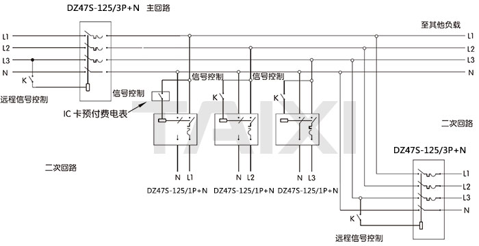 DZ47S-125 IC卡預(yù)付費斷路器,具有智能分勵脫扣功能,適用于交流50Hz(或60Hz),額定工作電壓為230/400V,額定電流至125A的線路中,對線路進行遠距離控制分斷或自動信號控制分斷,同時對線路起過載和短路保護作用,也可以作為線路的不頻繁操作轉(zhuǎn)換之用。目前,廣泛應(yīng)用于IC卡預(yù)付費電度表配套使用來控制線路的通斷。
