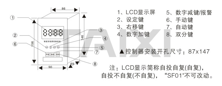 2、手動(dòng)鍵:可認(rèn)為在控制器上選擇常用電源或備用電源。