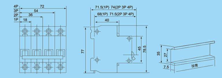 按極數(shù)分(POLE):1P.單極; 2P.二極; 3P.三極; 4P.四極。