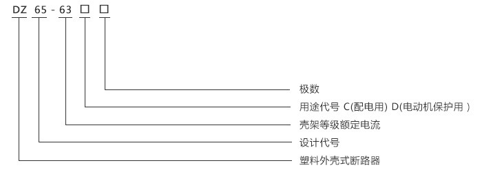 DZ65-63(C65斷路器)高分斷小型斷路器具有結構先進、性能可靠、分斷能力高、外形美觀小巧等特點,殼體和三部件采用耐沖擊、高阻燃材料構成。適用于交流50Hz或60Hz,額定工作電壓400V及以下,額定電流為63A以下的場所。主要用于辦公樓、注重和類似的建筑物的照明、配電線路及設備的過載、短路保護,也可在正常情況下,作為線路不頻繁的轉換之用,該產品符合IEC60898和GB10963等標準的要求。二、型號及其規(guī)格