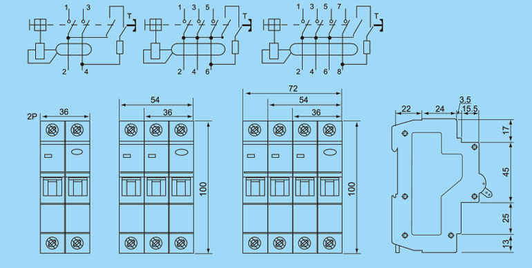 TXD7-63系列新型漏電斷路器(漏電保護(hù)開(kāi)關(guān))是由漏電脫扣器附件和TXB7N-63斷路器結(jié)合縮小設(shè)計(jì)而成,2P/3P/4P漏電比普通的DZ47LE斷路器要窄很多,同時(shí)它保持了與TXB7N相同的時(shí)間-電流動(dòng)作特性,其機(jī)械裝配,即可由企業(yè)在工廠完成,也可在現(xiàn)場(chǎng)進(jìn)行。漏電脫扣特性參數(shù)由工廠整定,用戶不可調(diào)整,也不能拆開(kāi)漏電斷路器,以免影響性能。漏電斷路器有63A殼架等級(jí)電流,分別可接25mm2導(dǎo)線。在漏電斷路器上設(shè)有一個(gè)專(zhuān)門(mén)用來(lái)指示漏電動(dòng)作的指示裝置,只有在指示裝置復(fù)位以后,漏電斷路器才能閉合。并配有帶自復(fù)式按鈕的試驗(yàn)裝置,按下時(shí)內(nèi)部線路產(chǎn)生一模擬剩余電流,使斷路器分?jǐn)?。試?yàn)裝置應(yīng)定期試驗(yàn),每月一次。
