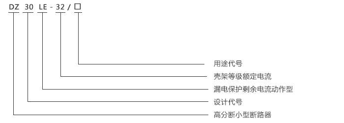 產(chǎn)品型號(hào)和名稱:如DZ30LE漏電保護(hù)器/DZ30LE-32漏電斷路器/DZ30漏電開關(guān)。