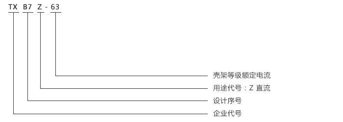 產(chǎn)品型號和名稱:如TXB7Z-63直流斷路器/TXB7Z直流小型斷路器 瞬時脫扣額定電流:如16A。