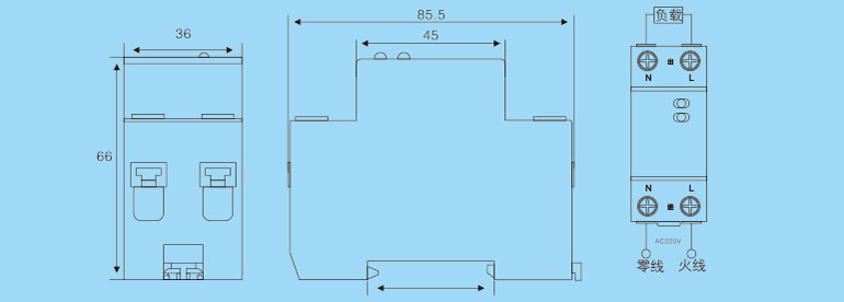 自復(fù)式過欠壓保護(hù)器結(jié)構(gòu)緊湊、外觀美觀、安裝與DZ47(C45)導(dǎo)軌通用。